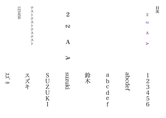 1. もし書籍を縦書きにしたい場合は、数字と英語を「全角」で入力しましょう。半角で入力すると、縦書きにしたときに数字が寝てしまいます。