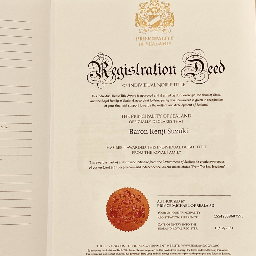 この爵位はシーランド公国という